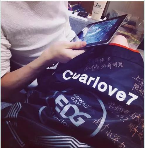 廠(chǎng)長(zhǎng)女朋友把腿放在廠(chǎng)長(zhǎng)身上,身上還蓋著廠(chǎng)長(zhǎng)的隊(duì)服Clearlove7,廠(chǎng)長(zhǎng)像是在用平板看比賽,兩人十分的親密。