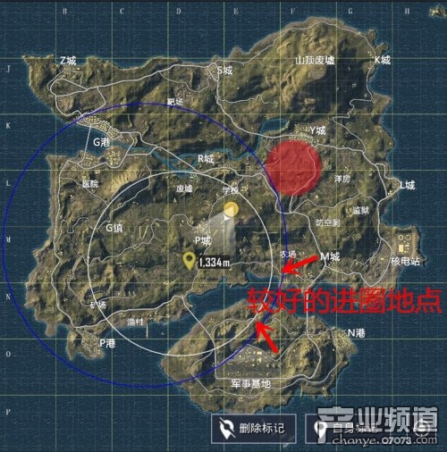 盡量選擇大圈(藍色)與小圈(白色)相距最近的點進圈,這樣做可以降低敵人從后方冒出的幾率,避免前后夾擊和被首先發現。